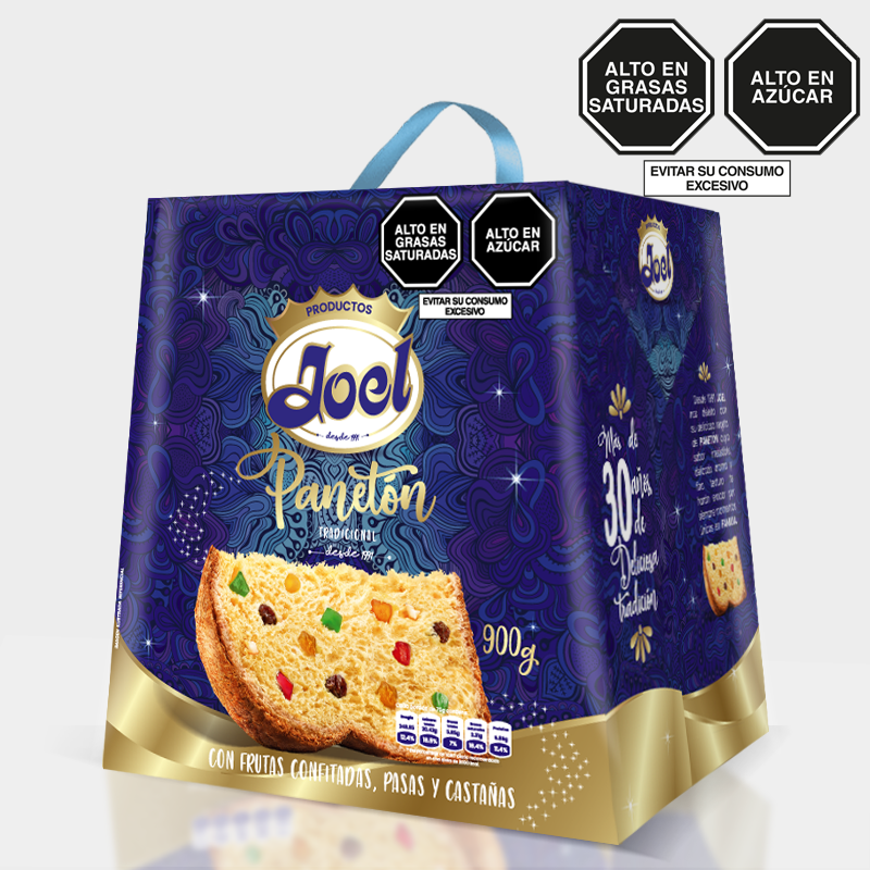 Riquísimo PANETÓN, elaborado con finos y selectos ingredientes, hecho de trigo fortificado. CONTIENE CASTAÑAS y FRUTAS CONFITADAS elaborado por los mismos creadores de turrones JOEL
