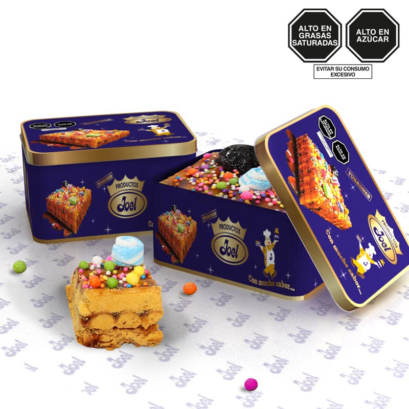 Riquísimo Turrónes JOEL, elaborado con finos y selectos ingredientes, hecho de trigo fortificado, zumo de frutas de membrillo y piña 100% NATURAL- grageas y confites. Elaborado por los mismos creadores de turrones JOEL